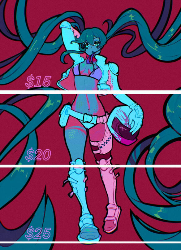 +I have the right to deny or cancel a commission for violation of these terms.+DO NOT be use for NFTs or for AI training.+Please don't post without proper credit. Do not repost the art claiming it as your own. For use in profile pictures, credit is kindly requested but not required.+Additional characters will be an additional cost (+50% of the base cost).
